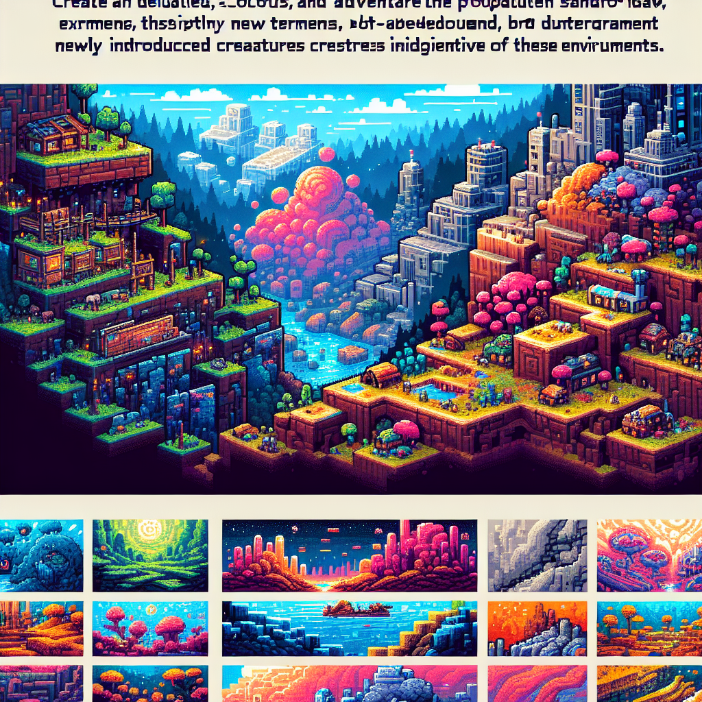 Bioma inovatif lainnya yang diperkenalkan dalam pembaruan ini adalah Gua Kristal. Surga bawah tanah ini dipenuhi dengan formasi kristal megah yang menerangi gua-gua gelap. Kristal-kristal ini lebih dari sekedar estetika; mereka dapat ditambang untuk membuat peralatan dan barang dekoratif baru. Ini adalah surga bagi penjelajah dan pembangun.